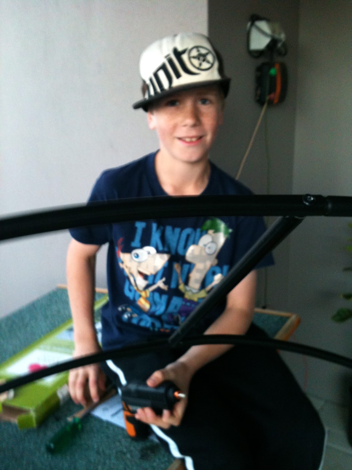 Then (while Mr Tom avoided doing his assignment) Mr Brandon helped my build the Arch that the Passionfruit will climb... with a little help from Rex who just wanted cuddles today.